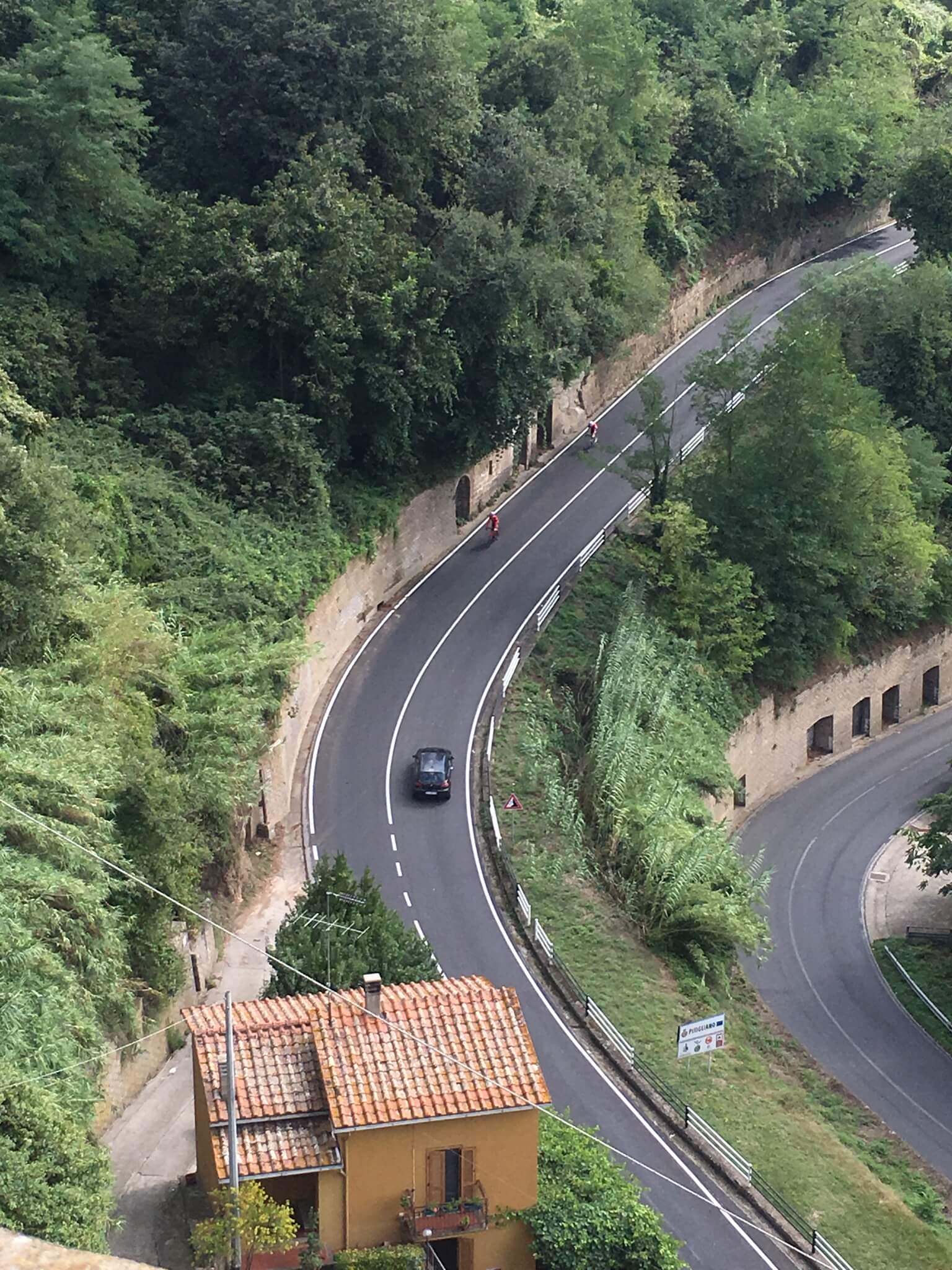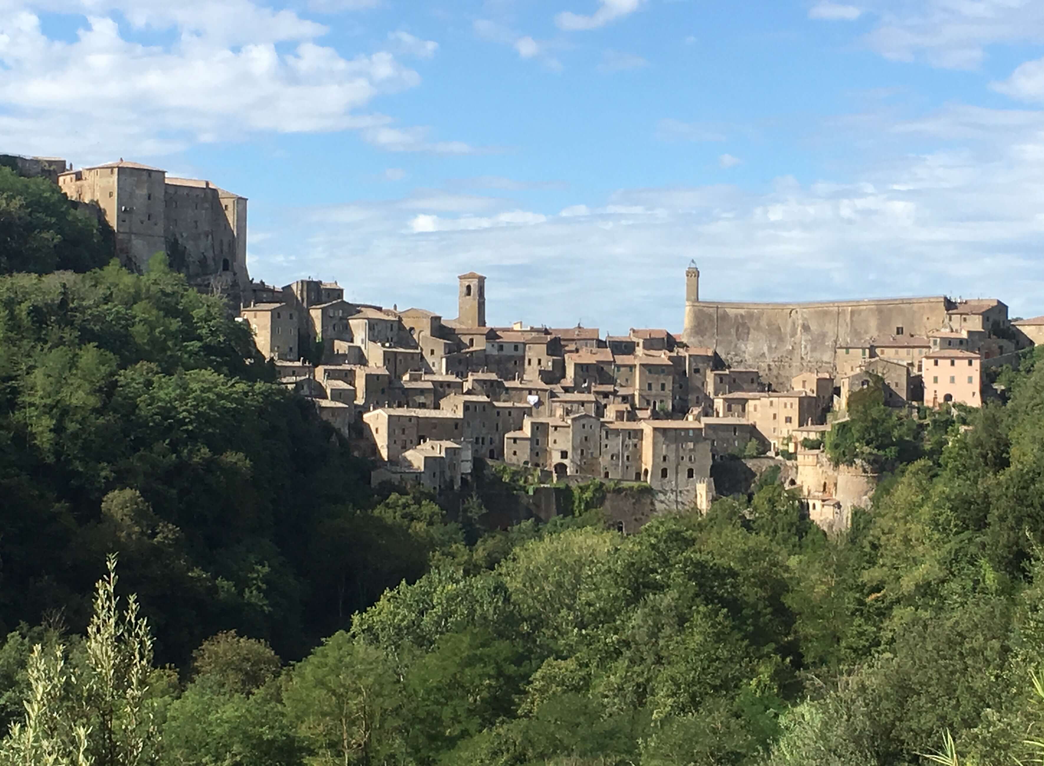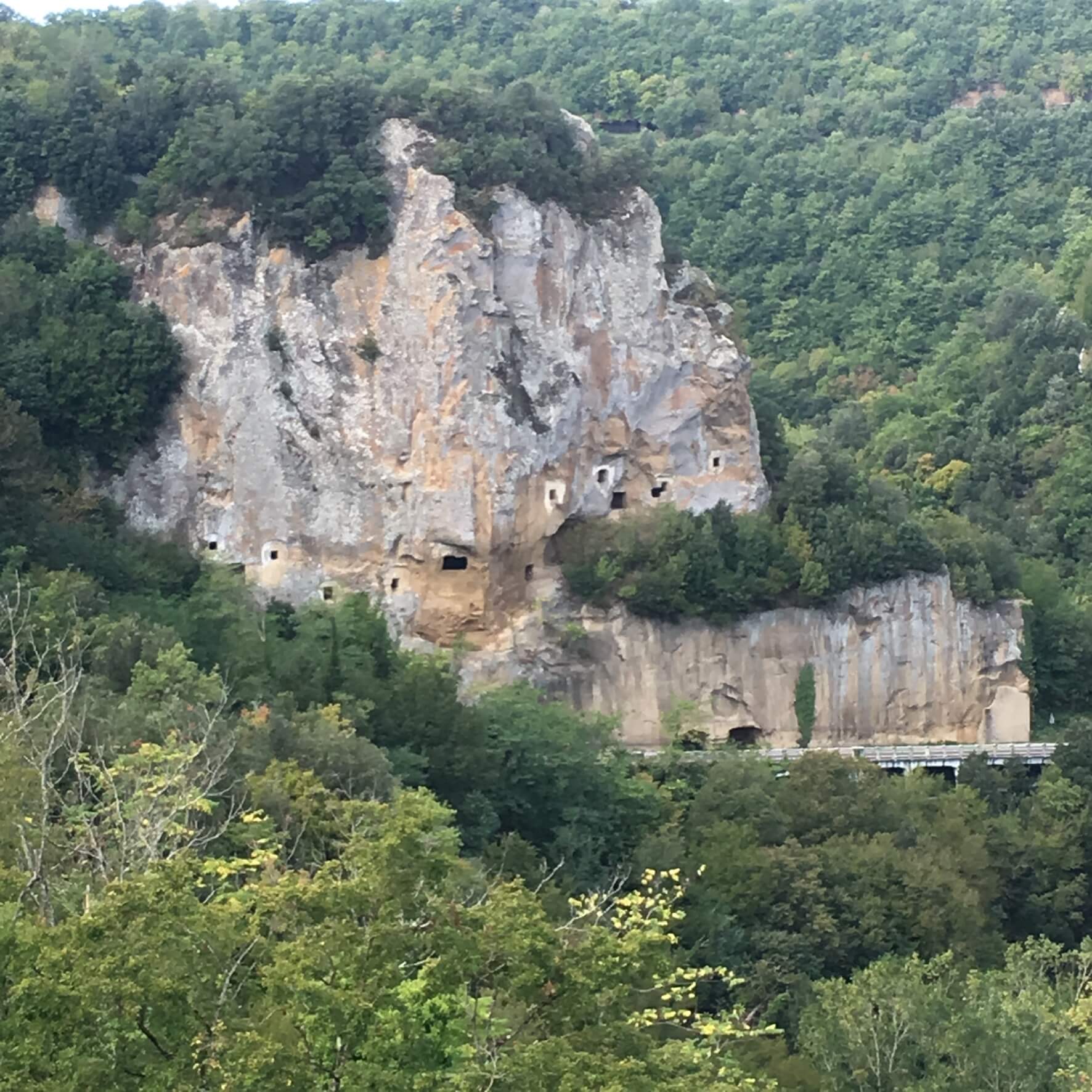 A day of undulations, some of which were 12% and more dramatic scenery. We entered the area of workable Tufa rock. Our first big town was Sorano where we saw the first signs of dwellings carved into the rock.