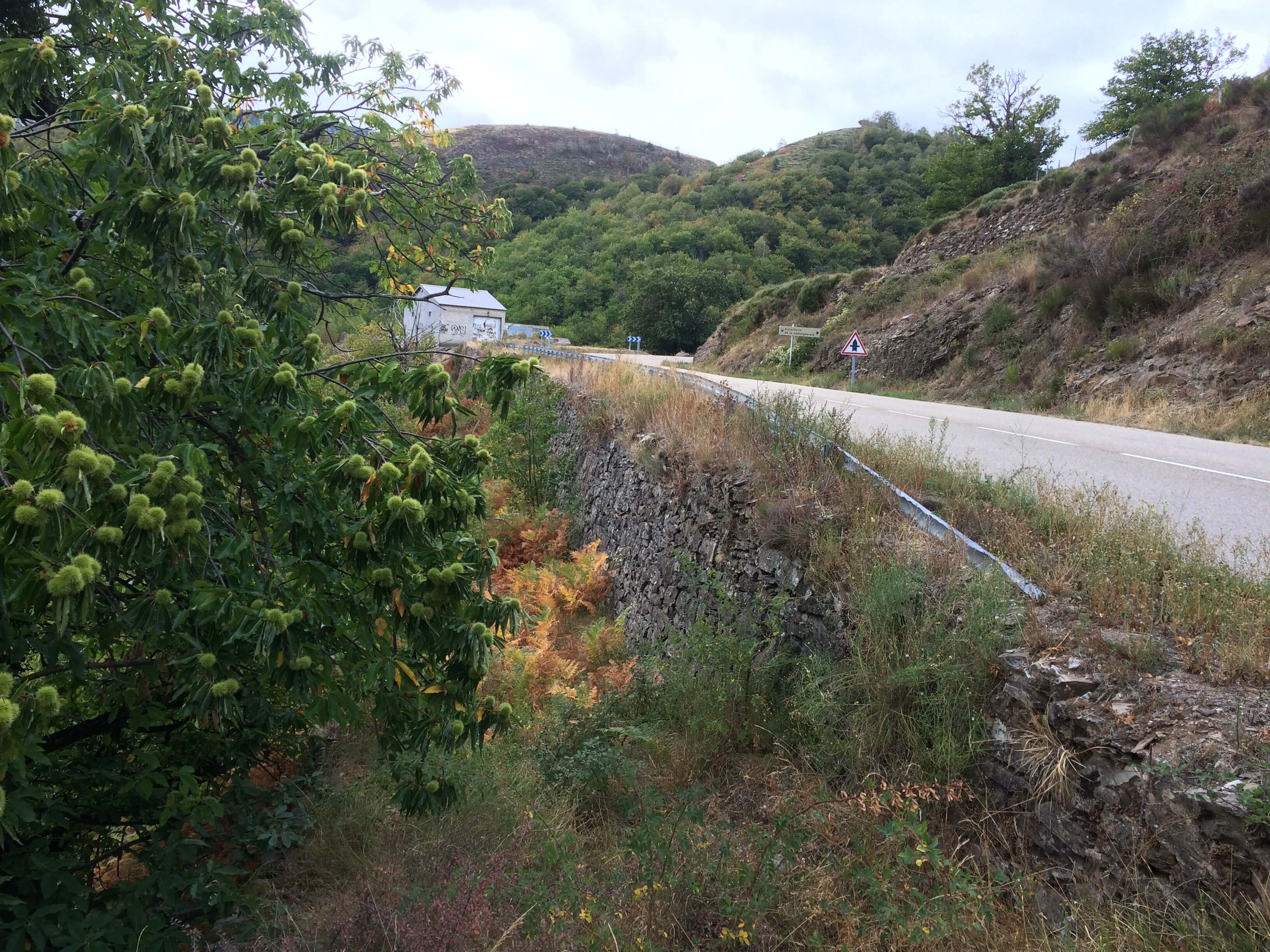 The descent from the Col was truly magnificent with a different view around each bend. At the top it was like pastureland then further down the road was lined with heavily ladened chestnut trees.